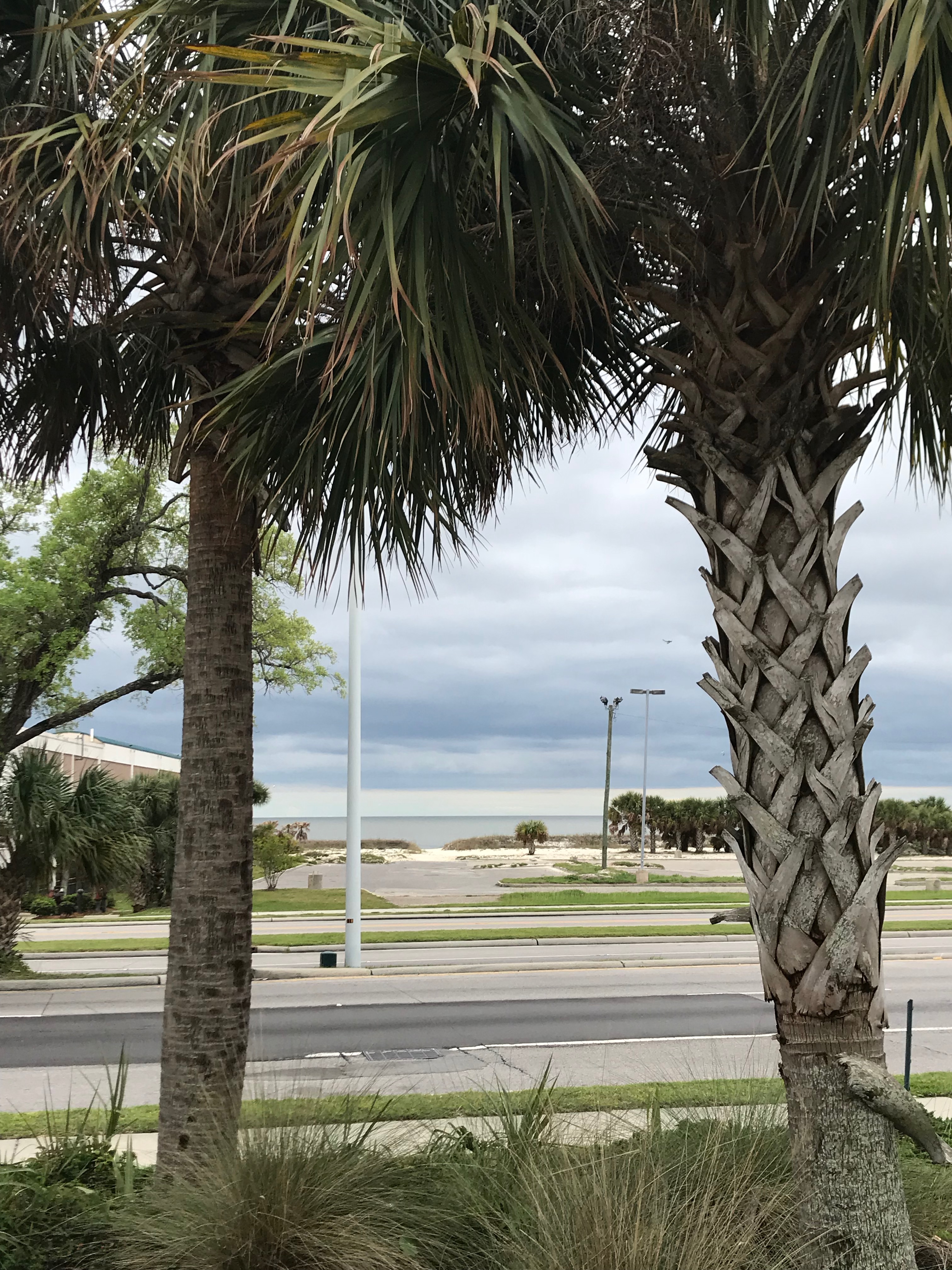 야자수들 사이로 보이던 하늘과 바다.