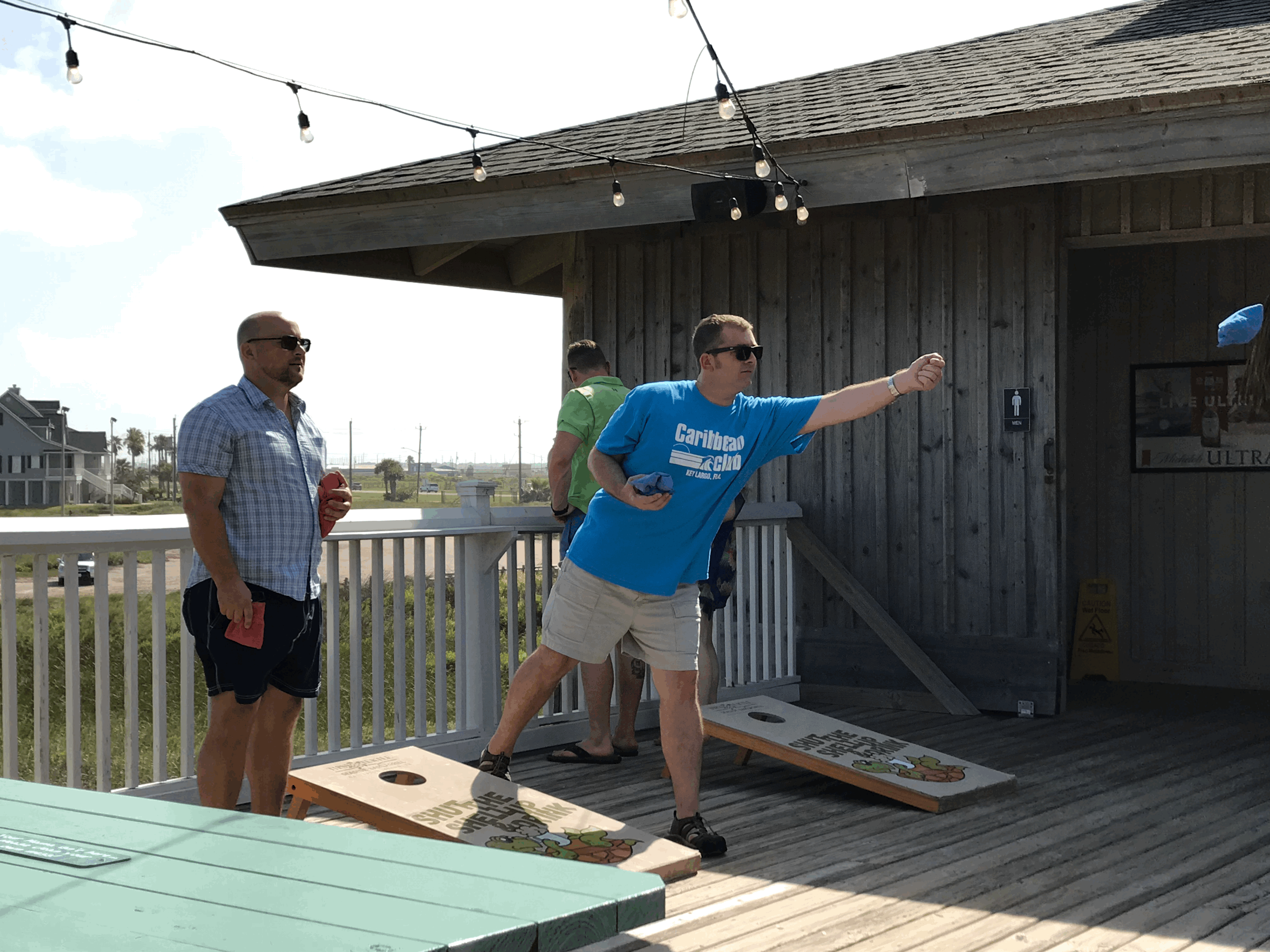 서방이랑 서방 친구는 콘홀(cornhole) 게임 한 판.