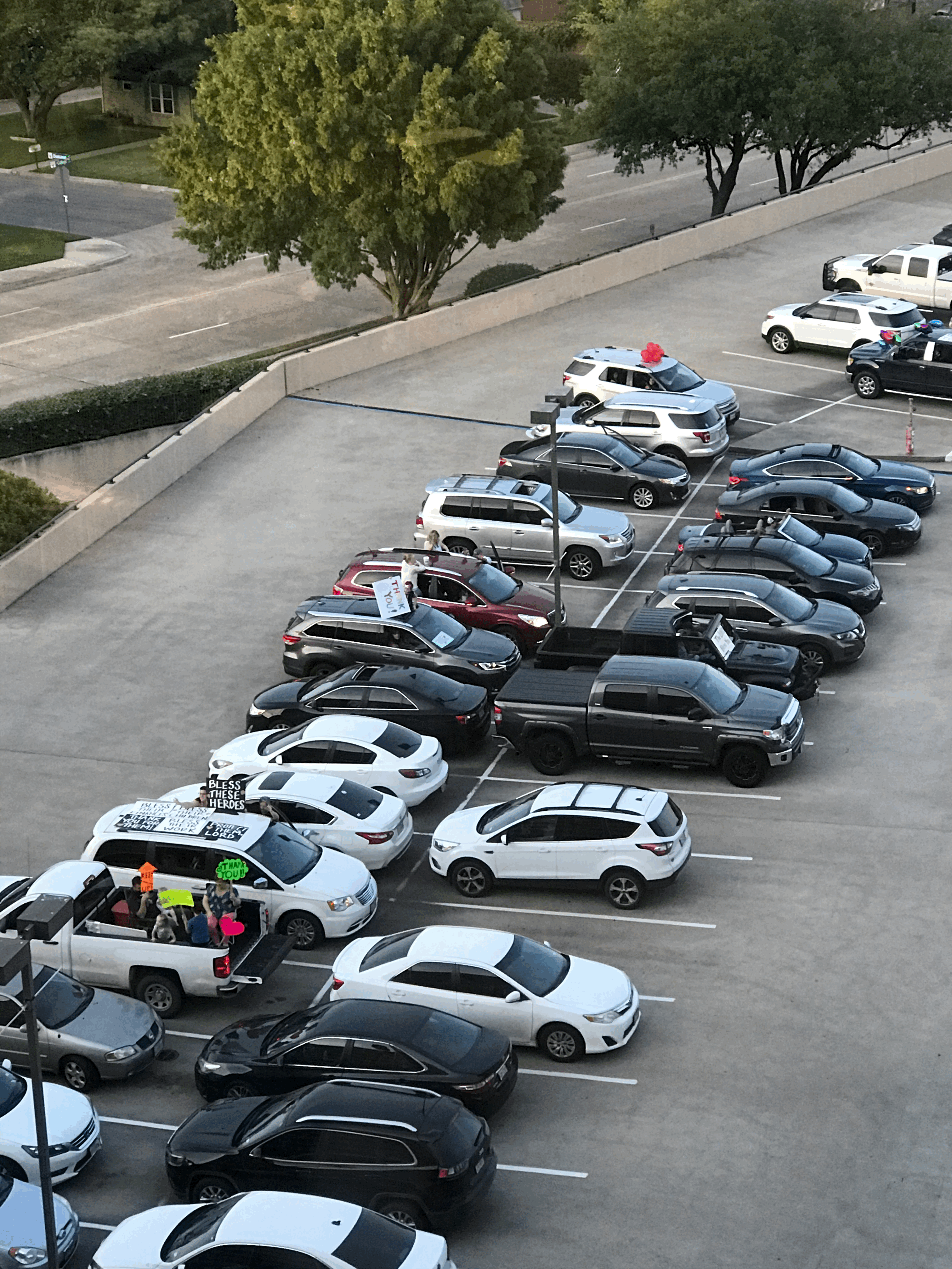 저희 병원 근처에 있는 큰 교회에서 사람들이 와서 각자 차에 있으면서 기도해주신다네요.