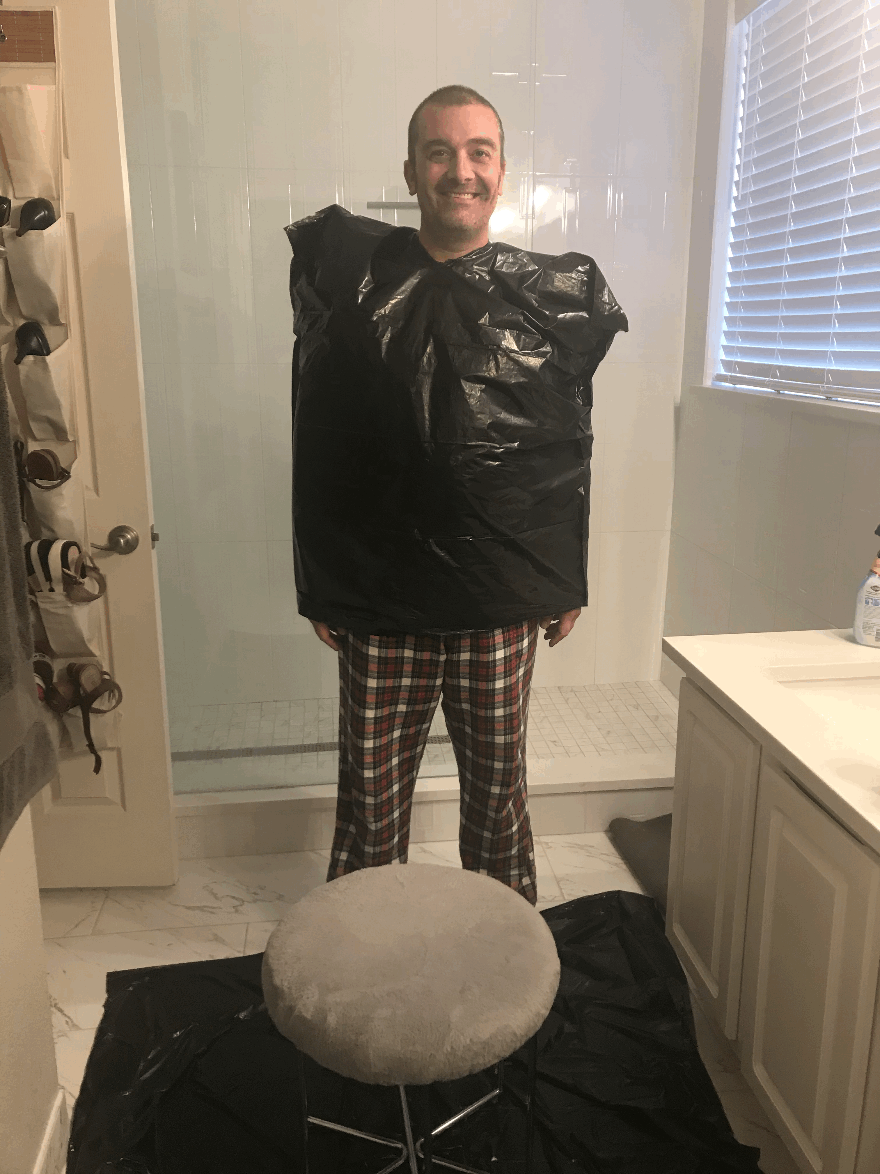 근데 까먹고 이발할 때 쓰는 망토(?) 같은 애를 안샀어요?!