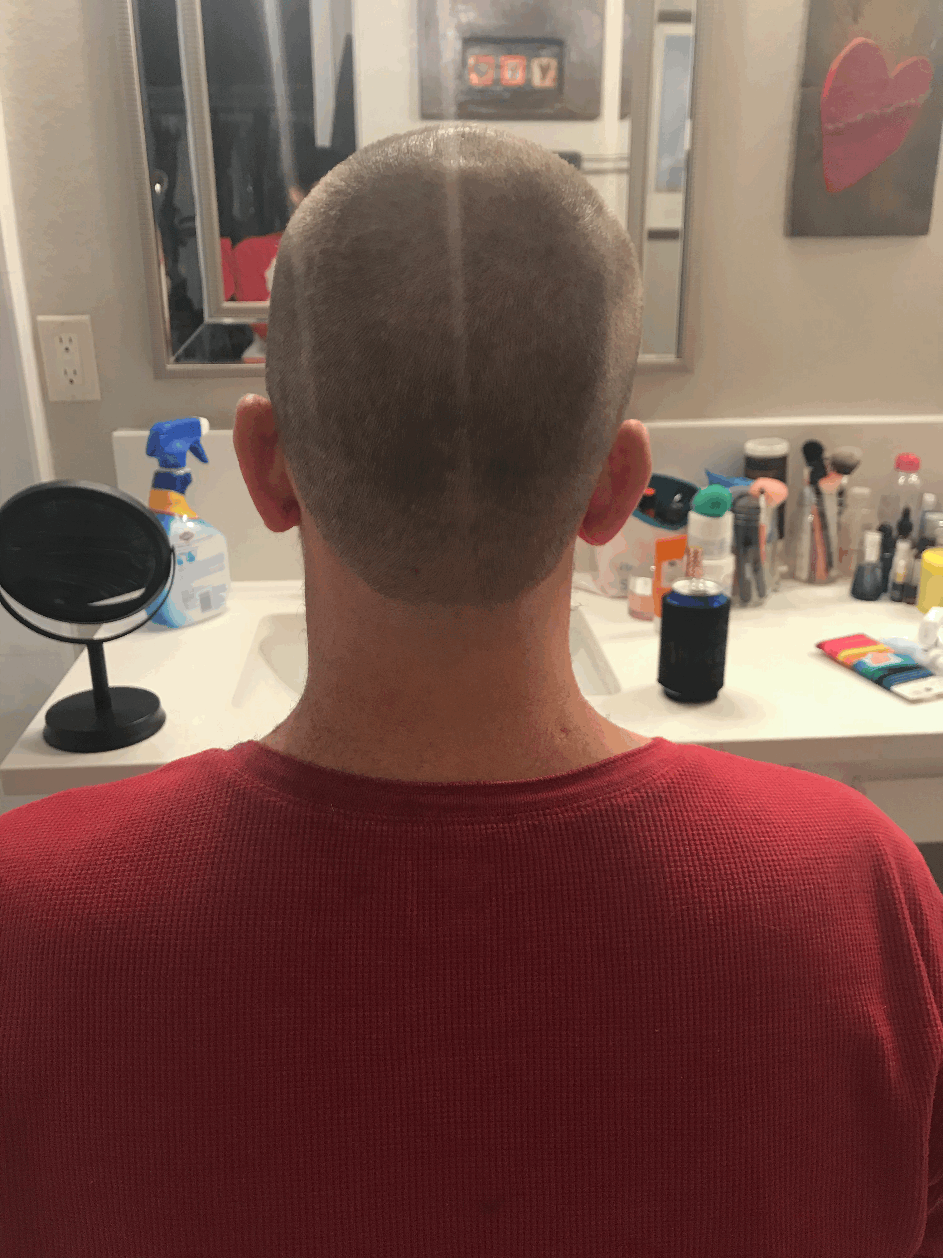 이발하기 전에 찍어놓은 옆모습이랑 이발 후 찍은 뒷통수!