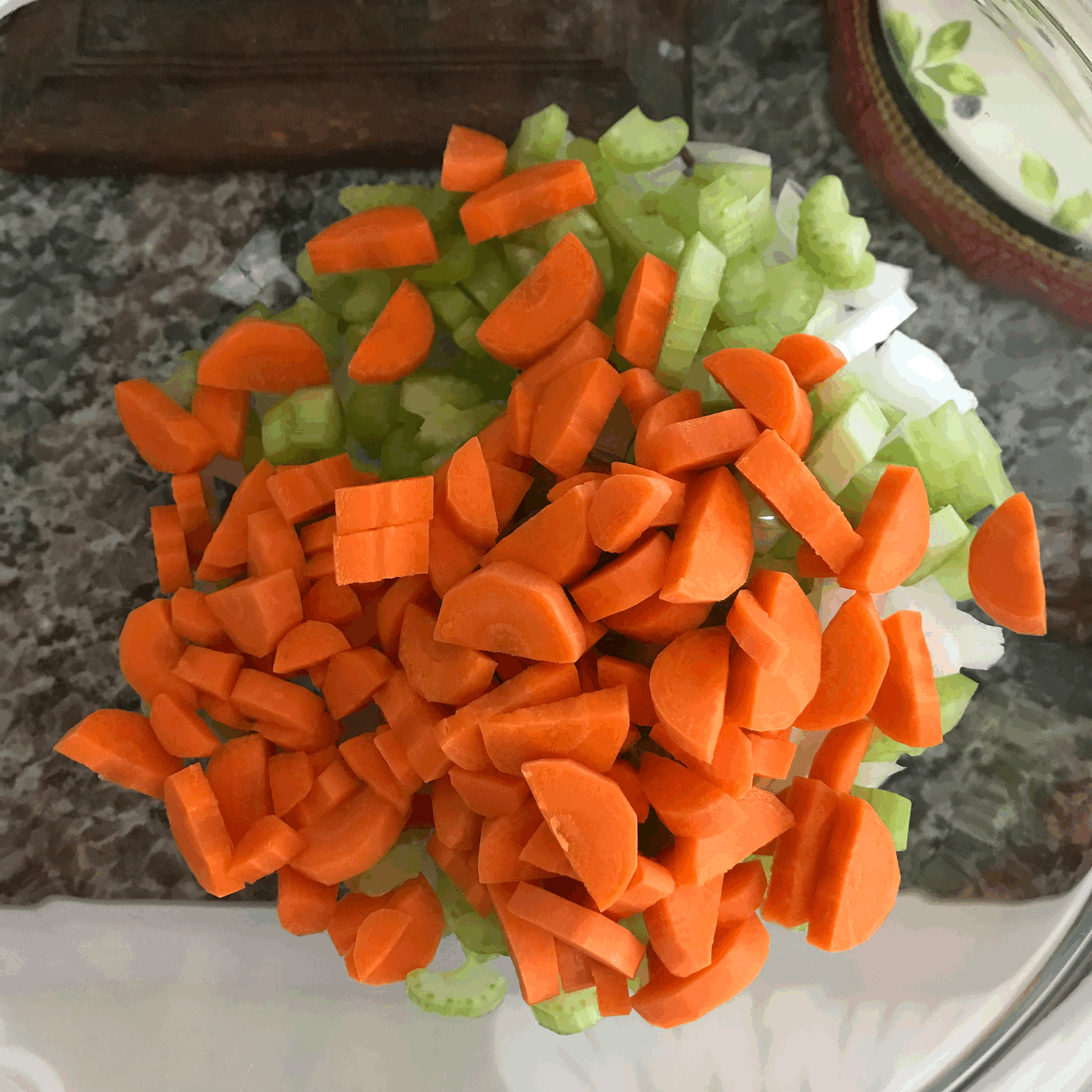 따땃~하게 예열되는 동안 당근, 샐러리, 양파를 잘게 썰어줍니다~