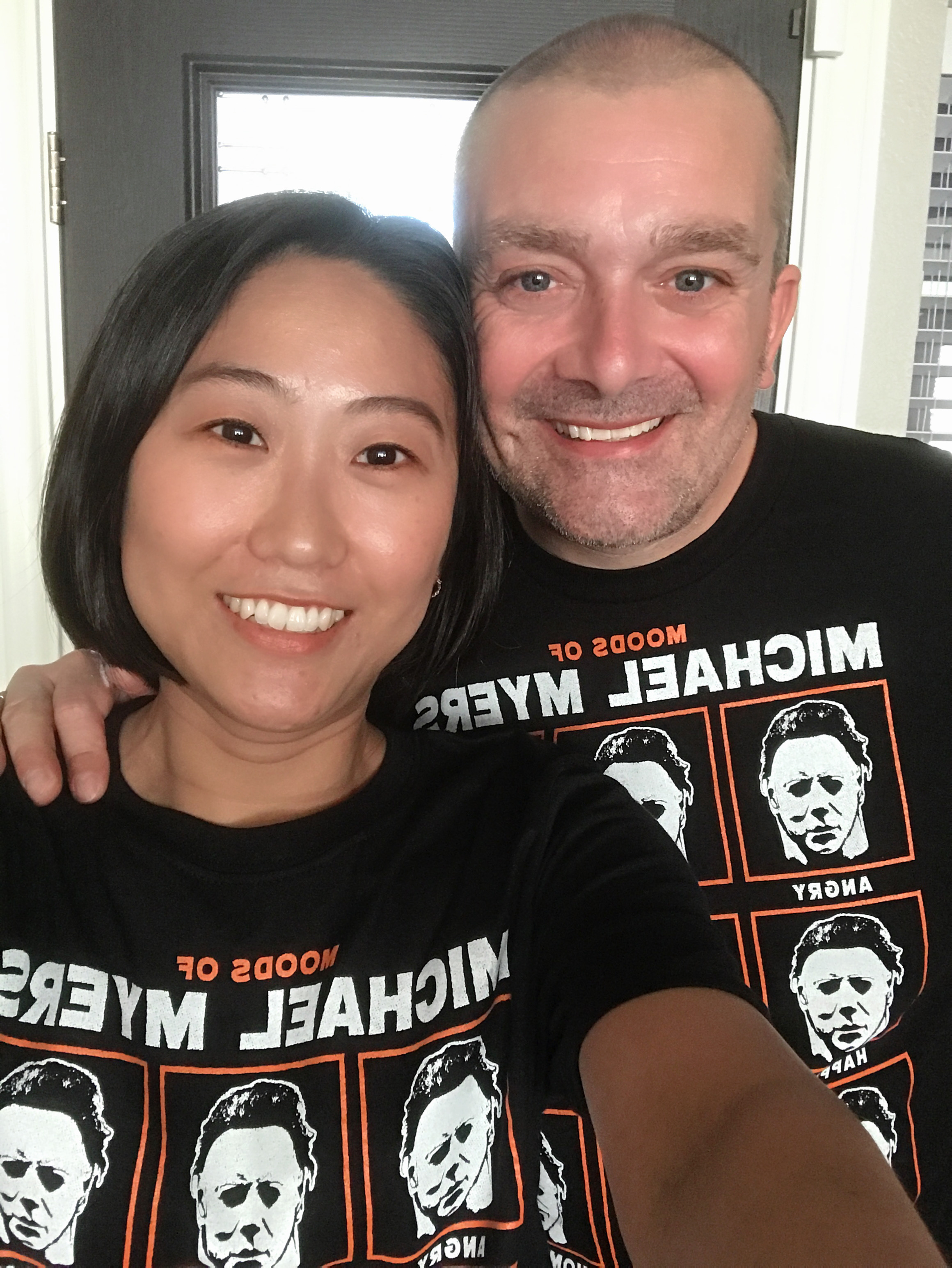 서방이랑 저는 예전에 쇼핑갔다가 득템한 마이클 마이어스 (Micheal Myers) 티셔츠!