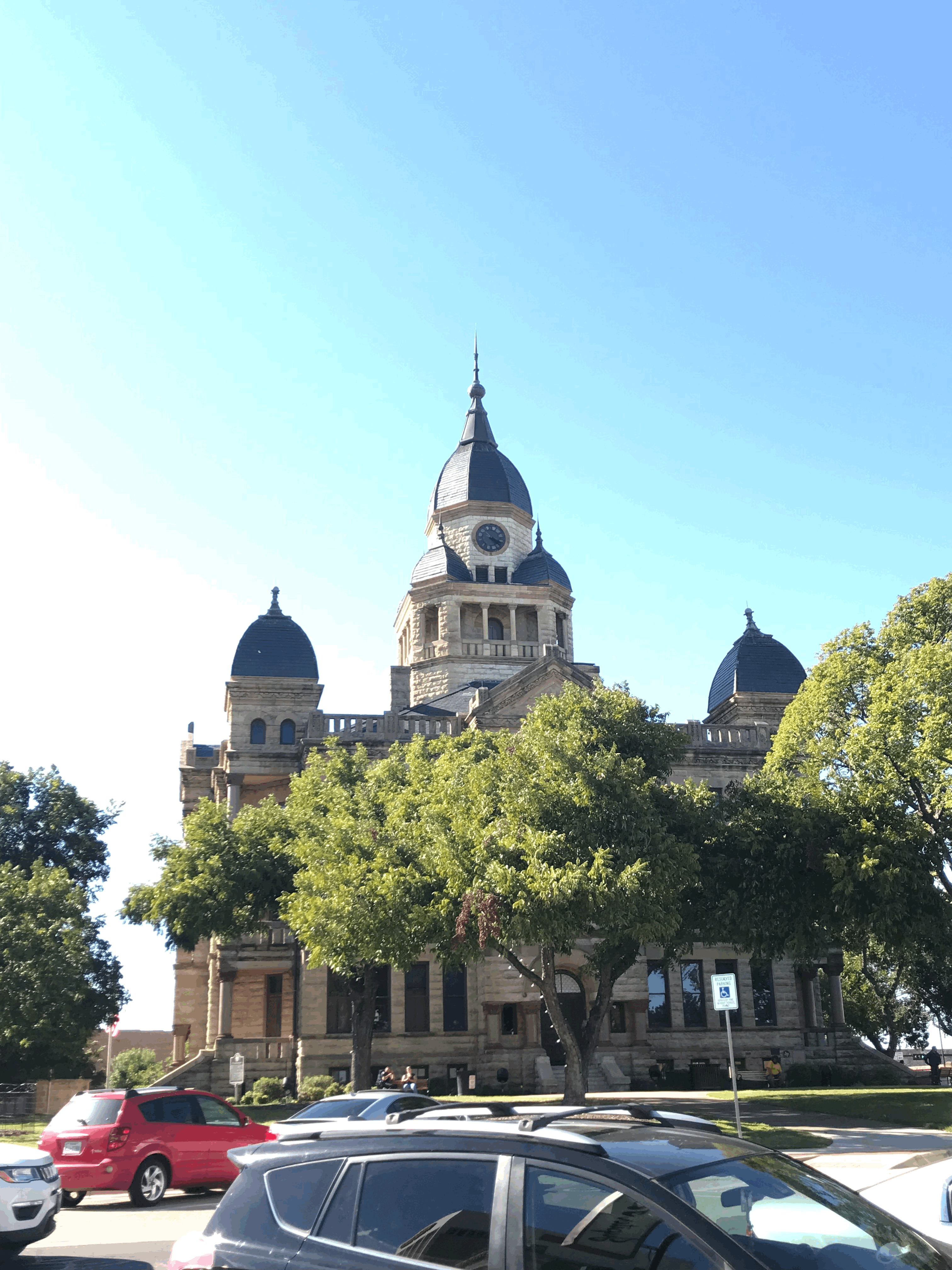 이뻤던 덴튼 시청 건물이랑 보라색 꽃.